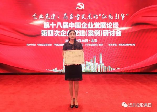 4.6月20日,慶祝建黨百年全國企業黨建研討會暨全國企業黨建創新優秀案例發布儀式在北京隆重召開,會議由中國企業聯合會、中國企業家協會指導,《中國企業報》集團、中國企業研究院舉辦,會上發布入選案例榜單并頒發證書。國家領導人、中央部委領導、中國企聯領導、專家、企業代表等出席會議并發表講話和演講,共同分享黨建成果,探討企業黨建經驗。遠東《創新模式開創平臺共享紅利——構建民營企業開放式、共享式黨建新格局》的黨建案例成功入選《全國企業黨建創新優秀案例》。資深合伙人、遠東控股集團首席監審服務官陳健紅出席會議并代表遠東領獎,高級合伙人、集團黨工群團部負責人孔群令出席會議。在黨建工作機制中,遠東積極變革,以“互聯網+黨建”的理念借網轉型、觸網蝶變。遠東推出“遠東文旅”項目,運用微平臺、網絡學堂和現場答卷的方式提煉和靈文化新內涵。并定期舉辦董監高微訪談,圍繞“如何更好地促進企業發展”為主題,提煉精髓,沉淀組織優秀文化資產。“圍繞發展抓黨建、抓好黨建促發展”。在今后的工作中,遠東黨委將不斷探索解決企業黨建工作面臨的新情況、新問題,努力做到在轉變中適應、在創新中加強、在發展中提升,構建起“強黨建、強遠東”格局,將黨的政治優勢、組織優勢轉化為企業的發展優勢、創新優勢、競爭優勢,助推遠東戰略轉型,實現遠東發展飛躍。